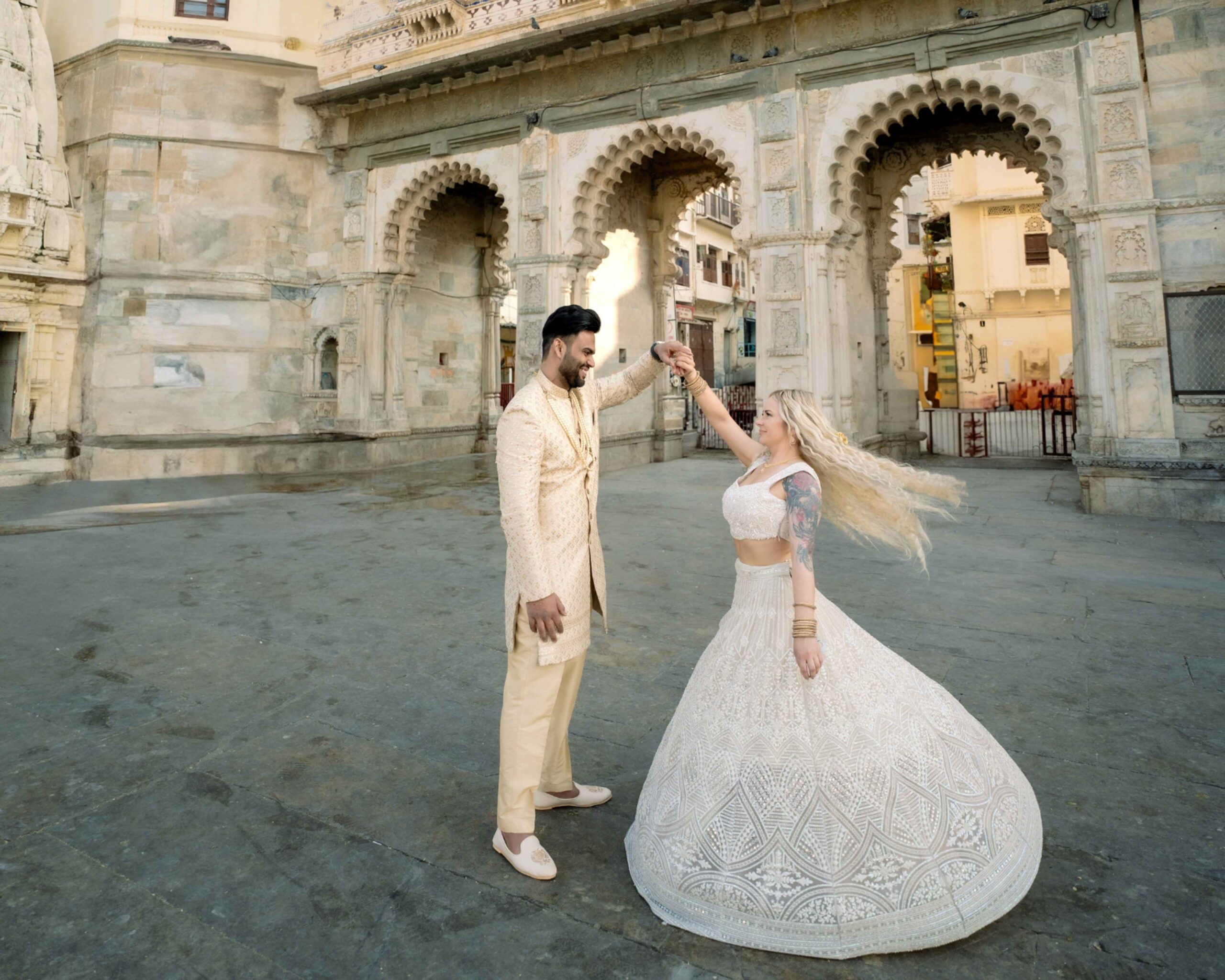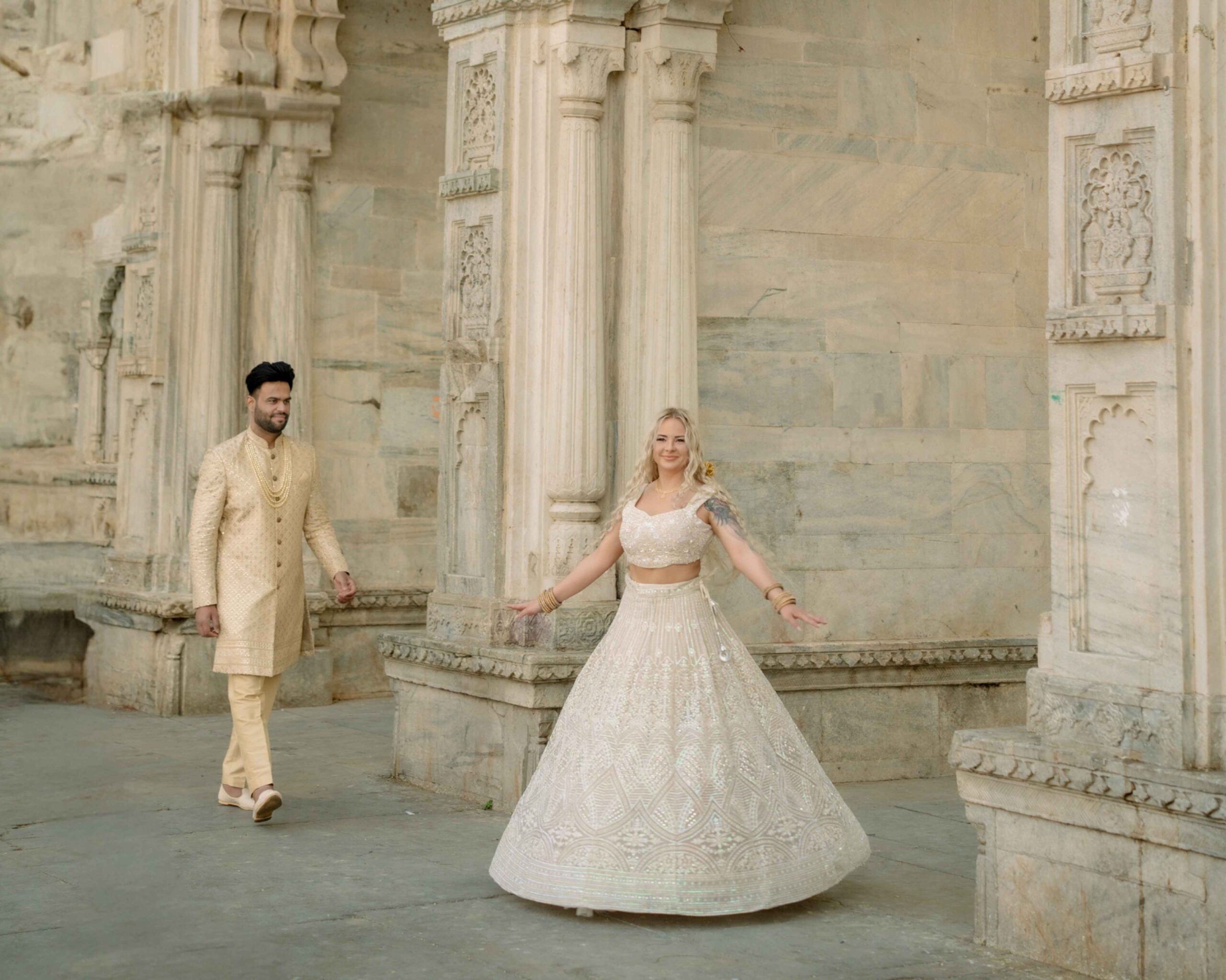From the majestic City Palace and the iconic Lake Pichola to the picturesque Jag Mandir and quaint alleys of old Udaipur, every corner provides the perfect setting for a professional pre wedding shoot in Udaipur. Our team captures candid laughter, intimate glances, and joyful moments with precision, creativity, and cinematic artistry.